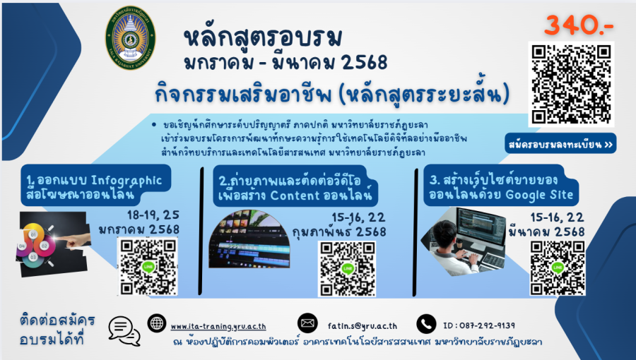 กิจกรรมเสริมอาชีพ (หลักสูตรระยะสั้น) เดือนมกราคม - มีนาคม 2568